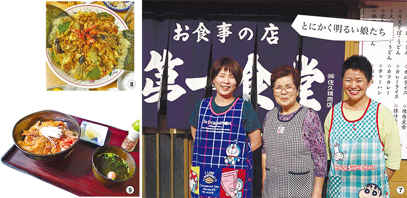 ⑦2世代と姪っ子の3人の女子が切り盛りする食事処。半世紀超の老舗感とは裏腹に、こまめに更新するツイッターのギャップたるや。最近は海外からのお客さんも増えているそう。豚玉丼やスタミナ定食、カツカレー大盛り(直径25cmの深皿!)など、安くてボリューム満点のメニューで世界の腹ペコたちをもてなします。夕方からは、天ぷらやシチューなどのお惣菜も販売していて、クレープが登場することも。