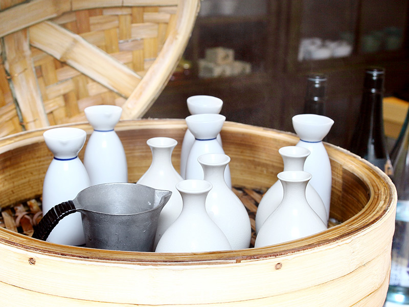 目の前で、蒸篭のふたを開ければ、温かな空気の中に鎮座する銚子たち。そんなスロウな風情もまた、味があってよろしい。