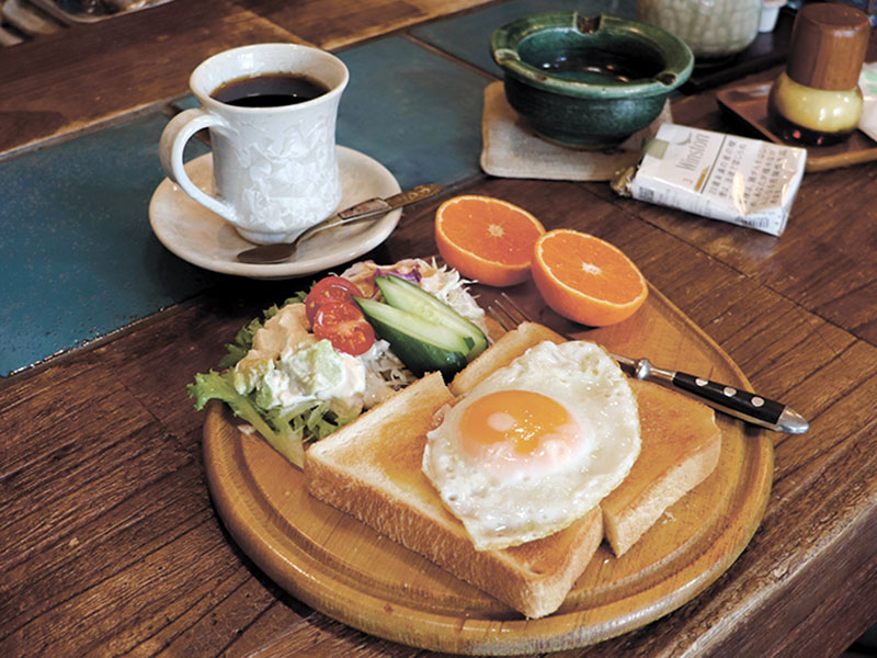 この場所では19年。喫茶店歴は50年にもなる店主の廣瀬さん。ハンドドリップで淹れるストレートのコーヒーとおしゃべり好きの性格に、常連さんも惹きつけられるのだろう。談笑しながらも数分で料理がでてきた。野菜たっぷりのサラダと、トーストの上には絶妙な焼き加減の目玉焼き。この時期にうれしいみかんもついている。目が覚めるような、ほっとするような、コーヒーのいい香りがする。アボカドと豆腐を明太子で和えたサラダは優しい味がした。「食べてもらうものは健康的な方がいいでしょ」と、お客さんを気遣いながら「今日は吉野家の牛丼が食べたいわ~」というところがチャーミングだ。世代を超えて愛され続けている理由を見た気がした。