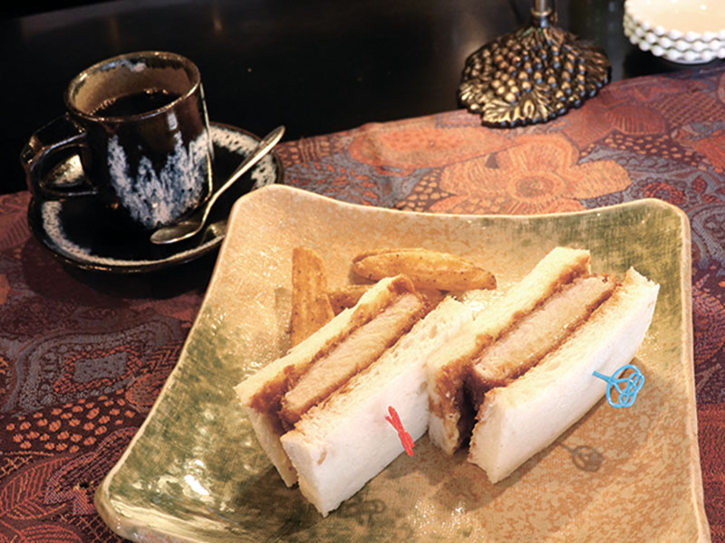 地元が末広なので、物心ついた時からお店の存在は知っていた。初めて来たのは4年ほど前だったか。確か暑い日で、アイスコーヒーを飲んだ気がする。日替わりランチにパスタ、ハンバーグも気になるが、今の腹の空き具合にぴたりとはまったカツサンド(820円)に決めた。メニューには真っ赤な文字で肉厚!と書かれている。活気のある店内でぼーっとテレビを眺めていると、コーヒーと共に運ばれてきた。熱いうちに一口飲んでから勢いよくかぶりつく。文字通り肉厚ながら歯切れのよい食感と、甘辛いソースにピリっとからしをきかせた味わいに、一瞬で心を持っていかれた。付け合わせのポテトも、塩味と見せかけてスパイシー。見た目はシンプルだが、ずいぶん楽しませてくれる。ニクいヤツだぜ。