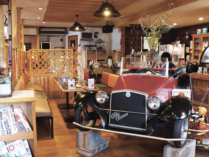 昭和喫茶には珍しい自動ドアに驚きつつ、カウンターに腰掛ける。店内には古い車がディスプレイされており、重ねた歳月が風景に色を付け、2つとない世界観を作りだしている。豊富なメニューを凝視しながら、チーズハンバーグ(1300円ドリンク付)を見て空腹が頂点に達した僕は、勢いのまま注文をした。落ち着きを取り戻し、改めて車を眺めていると、隣にあるレトロなおもちゃの車が気になった。車体には「ビッグジャンボ」の文字。ドンズバなネーミングに、思わず笑みがこぼれる。