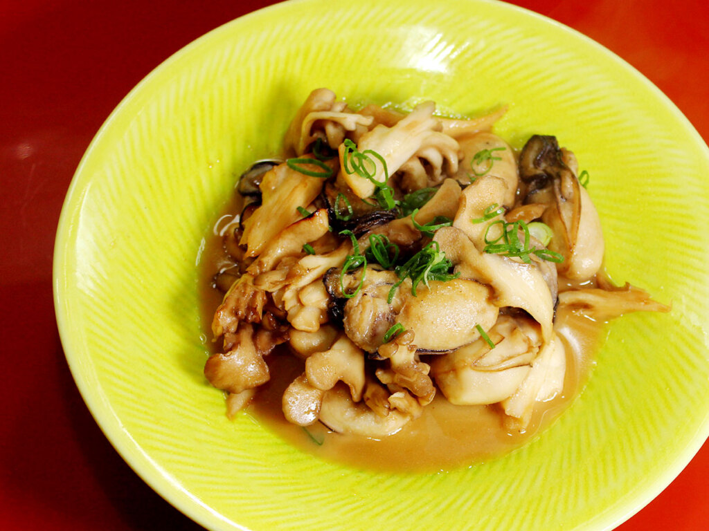 クリーミーな牡蠣に香り豊かな舞茸を添えた、ぷりぷり&シャキシャキの食感を楽しめるひと皿。