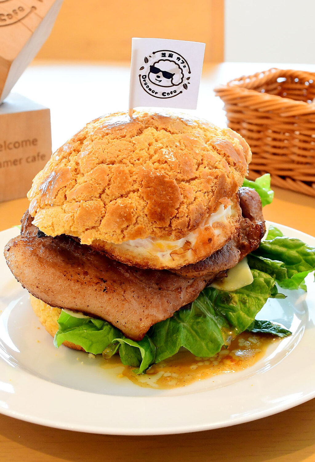 ポークチョップを挟んだメニューも人気ですが、芝麻カフェではより日本人好みになるよう、目玉焼きやトマトと一緒に挟んでバーガー風に仕立てています。低温調理したお肉は厚切りでもジューシーで柔らか。ひと口頬張れば、この甘じょっぱ沼から抜け出せなくなっちゃいますよ。一人前950円。テイクアウト可。