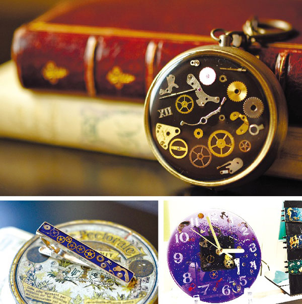 アンティーク時計を分解し、そのパーツでアクセサリーを作る「プチ・フレーズ」が、7月13日(木)まで、壺屋なゝ花窓館2階(忠和5条6丁目)で個展を開いています。
