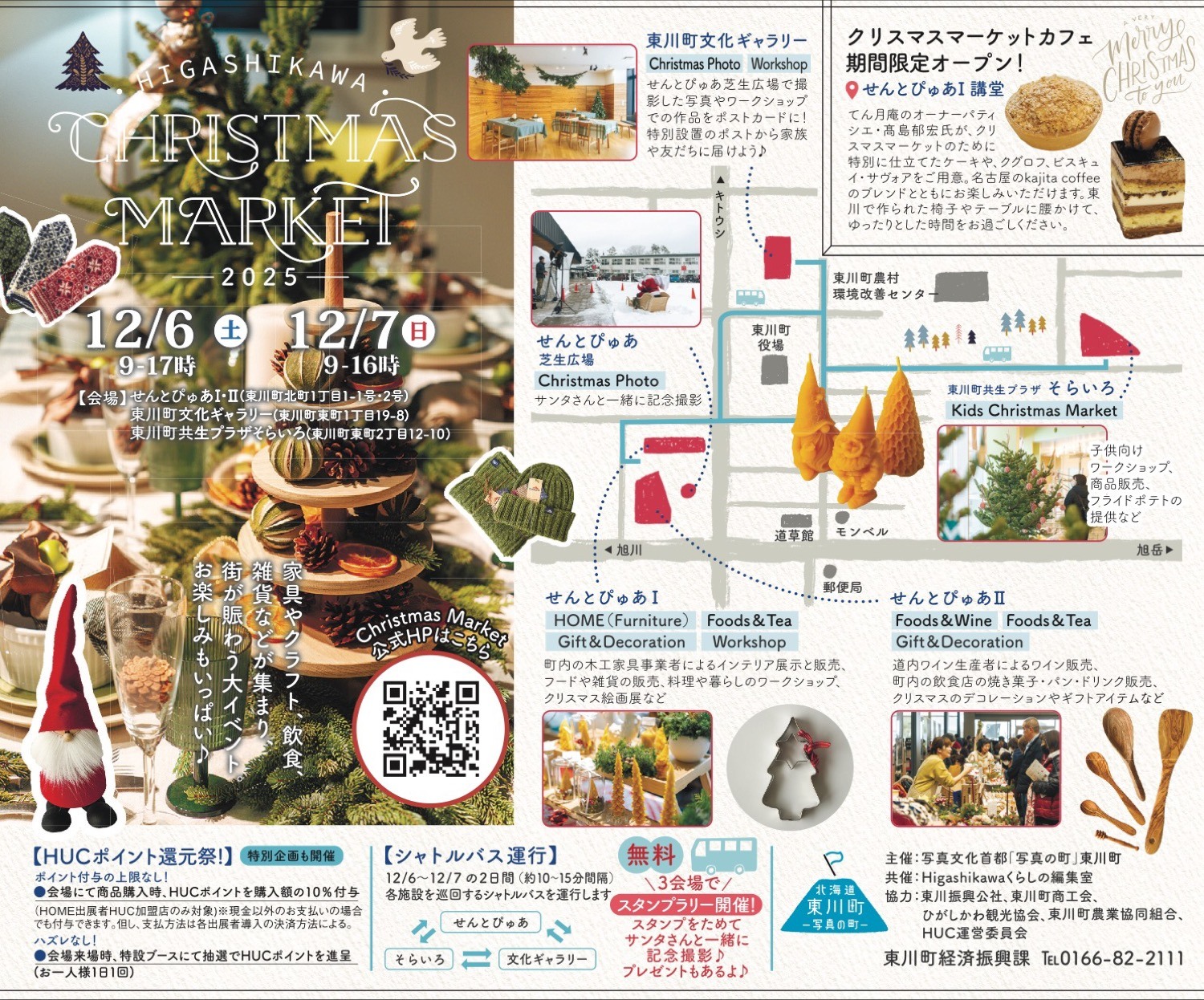 お探しのイベントは終了しましたHIGASHIKAWA CHRISTMAS MARKET 20252025年12月6日(土) 〜 12月7日(日)12/6(9-17時) 12/7(9-16時)ショッピング体験