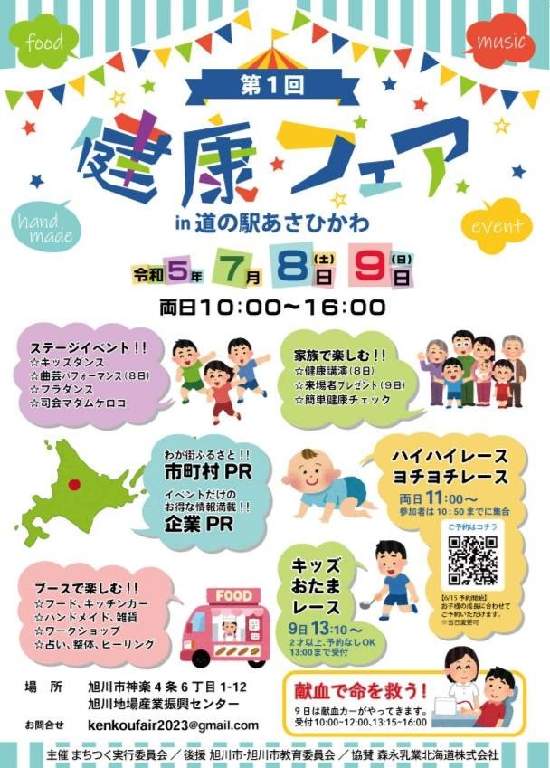 お探しのイベントは終了しました第1回 健康フェアin道の駅あさひかわ2023年7月8日(土) 〜 7月9日(日)10:00〜16:00道の駅あさひかわ/旭川地場産振興センター(旭川市神楽4条6丁目1-12)