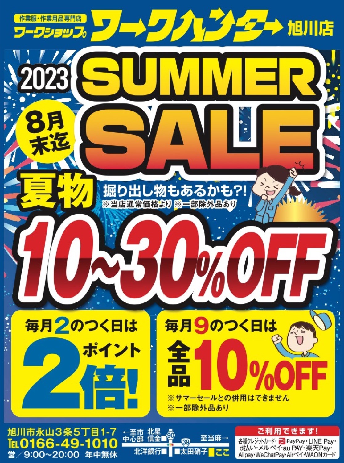 お探しのイベントは終了しましたSUMMER SALE 10〜30%OFF2023年8月8日(火) 〜 8月31日(木)ワークショップ ワークハンター 旭川店(旭川市永山3条5丁目1-7)※一部除外品あり