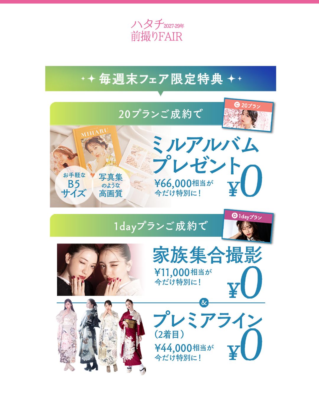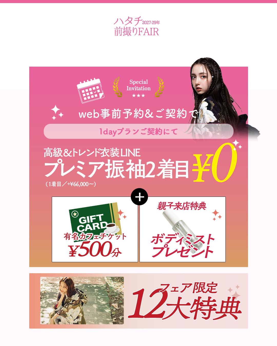 2027年2028年1月にご成人を迎える皆様、 成人式に参加する予定がない方、2026年以前に成人式をすでに迎えられた方の後撮りも大歓迎!!! ◆スペシャル特典をご用意! ◆豊富な振袖ラインナップ!無料試着可能! 『成人式当日は慌ただしいから、ゆっくり時間をかけて思い出を残したい』 『お気に入りの振袖で、ハタチのご記念を残したい』 『家族みんなで、思い出の一枚を撮りたい』 そんな前撮り・後撮りのご希望をお持ちの方、 ぜひ一度、三景スタジオ旭川本店の前撮りフェアへお越しください。 振袖選びはもちろん、ヘアメイク、ポーズなど、細部に至るまで、お客様の理想を叶えるためのサポートをさせていただきます♡ お電話、ウェブサイト、公式LINEにてご予約を承っておりますので、お気軽にお問い合わせくださいませ🎵