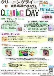 不要なモノに新しい価値・ストーリーをつけて生まれ変わらせる「アップサイクル」をテーマにしたイベント「クリーニングDAY」が、9月19日(土)午前11時から午後4時に、旭川公園ゲストハウスで開かれます。