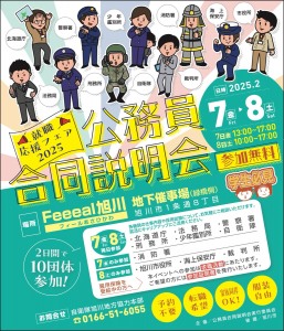 公務員を目指す人のための合同就職説明会「就職応援フェア2024」が、3月9日(土)に、フィール旭川(旭川市1条通8丁目)地下で開かれます。