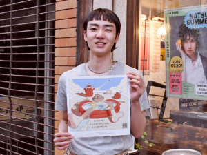 旭川市内でイラストレーターとして活動するみずまさすぐるさんの個展が、7月28日(日)まで雑貨店のウルトラ物産展(東川町1丁目)で開かれています。