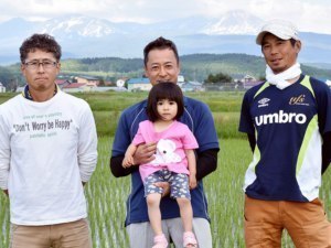 - 大雪山を見渡せる尾上さん(写真中央)の田んぼ。販売は小川商店のみで、生酒・火入れ酒ともに720ml1728円。居酒屋りしりでは料理との楽しみ方も提案しています