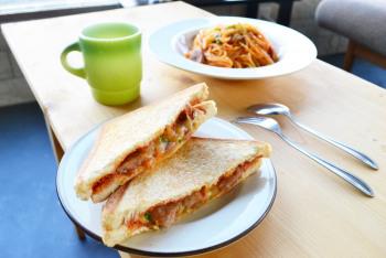 こんがりと焼き上げたサクサクのホットサンドや、豆乳を入れてあっさり仕上げたナポリタンと共に懐かしの音楽を楽しめます。約200種類のレコードから曲のリクエストも可能ですので、お気軽にお越しください。