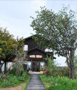 上富良野の小さな林の中 池の畔に佇むレストラン