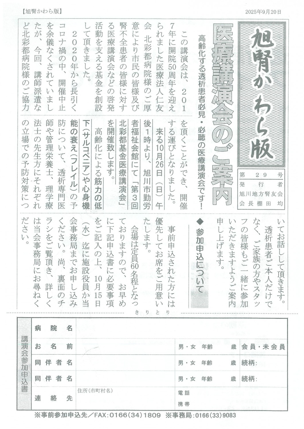 お問い合わせ先主催者名 | 旭川地方腎友会事務局 |