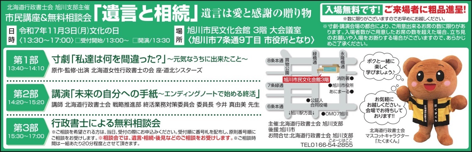 | 主催者名 | 北海道行政書士会 旭川支部 |