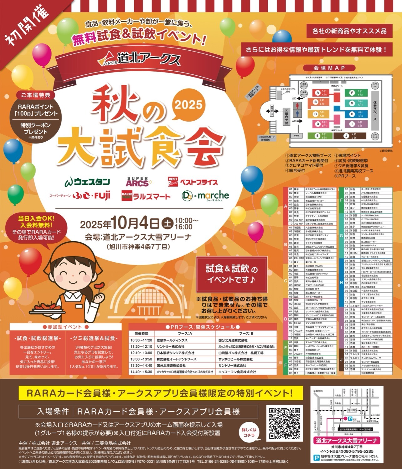 料金・費用 | ※会場入口でRARAカード又はアークスアプリのホーム画面を提示して入場 (1グループ1名様の提示が必要) |
