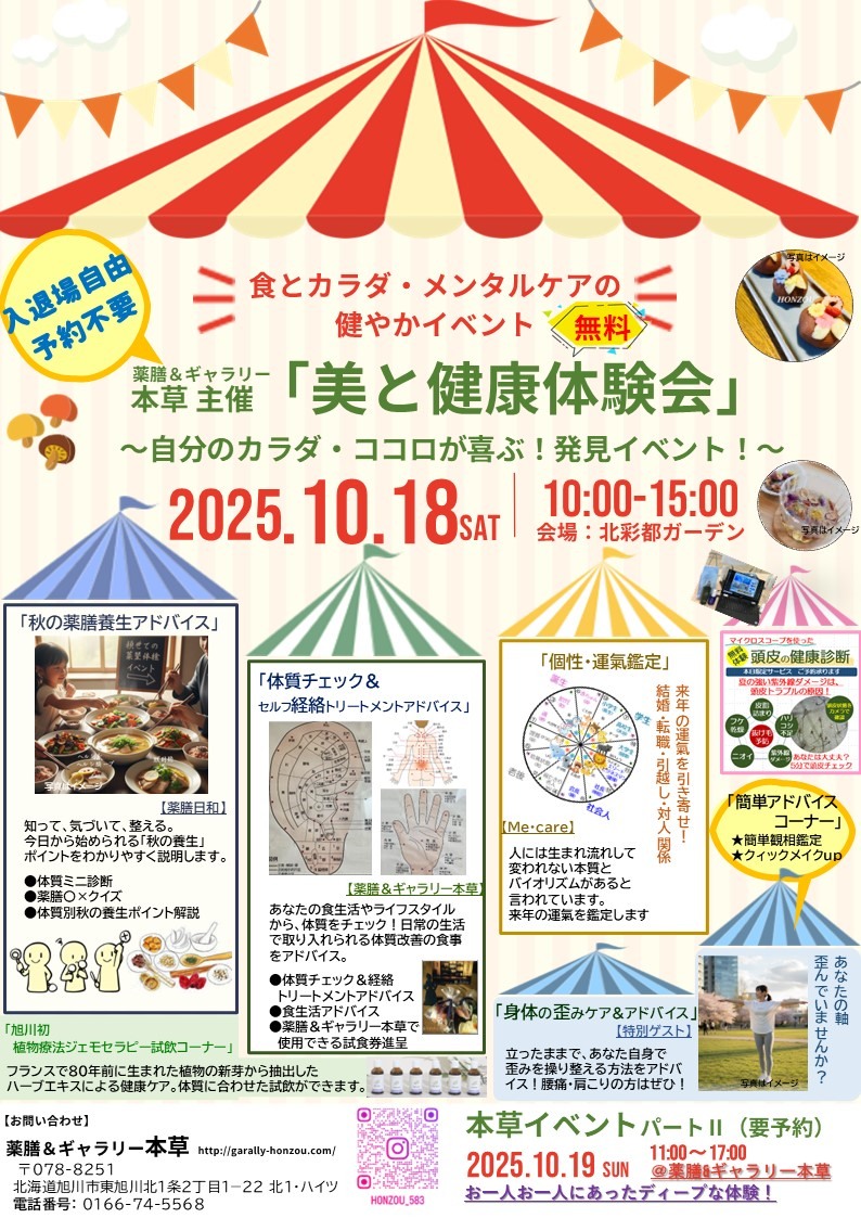 特典 | 10/19(日)薬膳&ギャラリー 本草主催「薬膳フェス」 お得クーポンをご用意! |