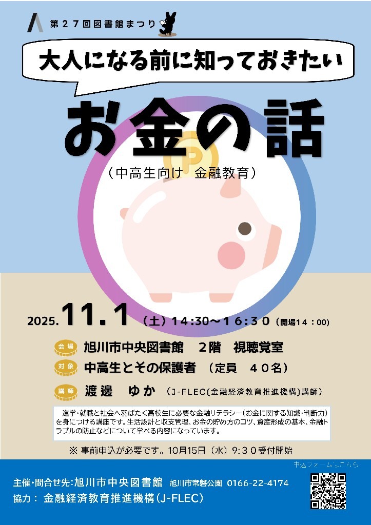 進学・就職と社会へ羽ばたく高校生に必要な金融リテラシー(お金に関する知識・判断力)を身につける講座です。生活設計と収支管理、お金の貯め方のコツ、資産形成の基本、金融トラブルの防止などについて学べる内容になっています。