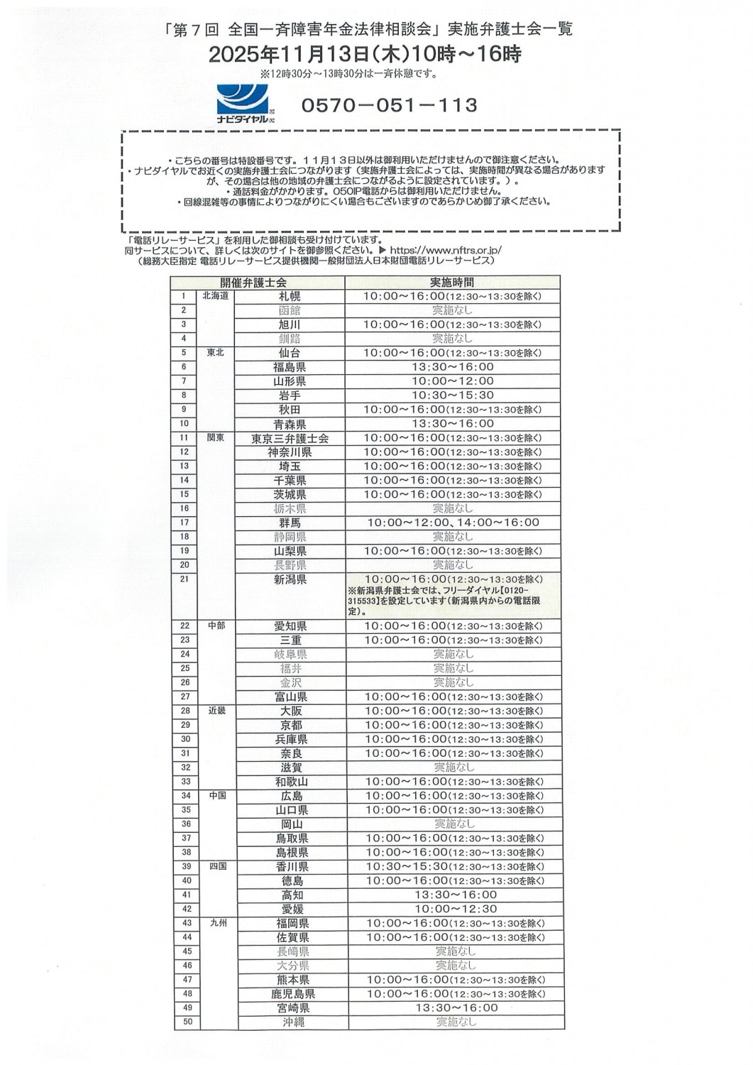 開催場所 | ナビダイヤルでお近くの弁護士会につながります |