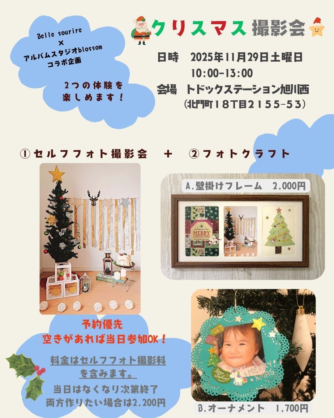 | 料金・費用 | セルフフォト+制作 オーナメント 1,700円 フォトフレーム 2,000円 |