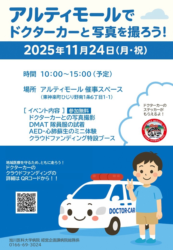 | 備考 | 地域医療を守るため、ともに走ろう! ドクターカーの クラウドファンディングの 詳細はポスターのQRコードから!! |
