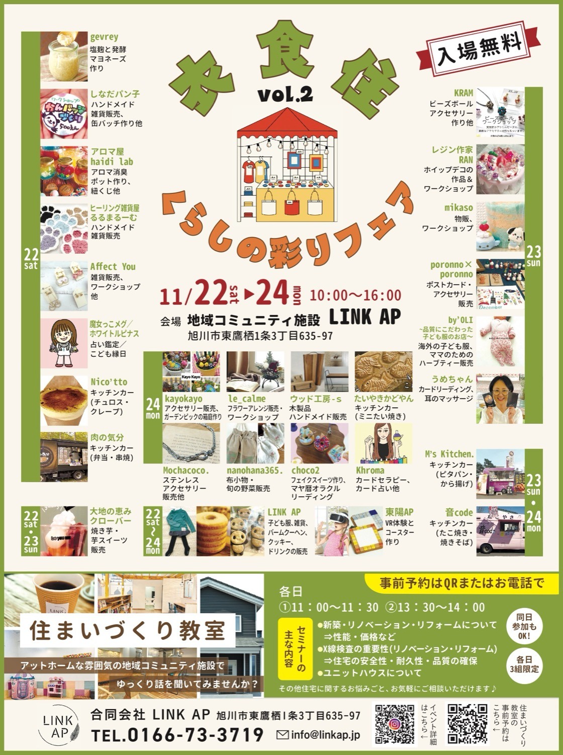 | 開催場所 | 地域コミュニティ施設 LINK AP |