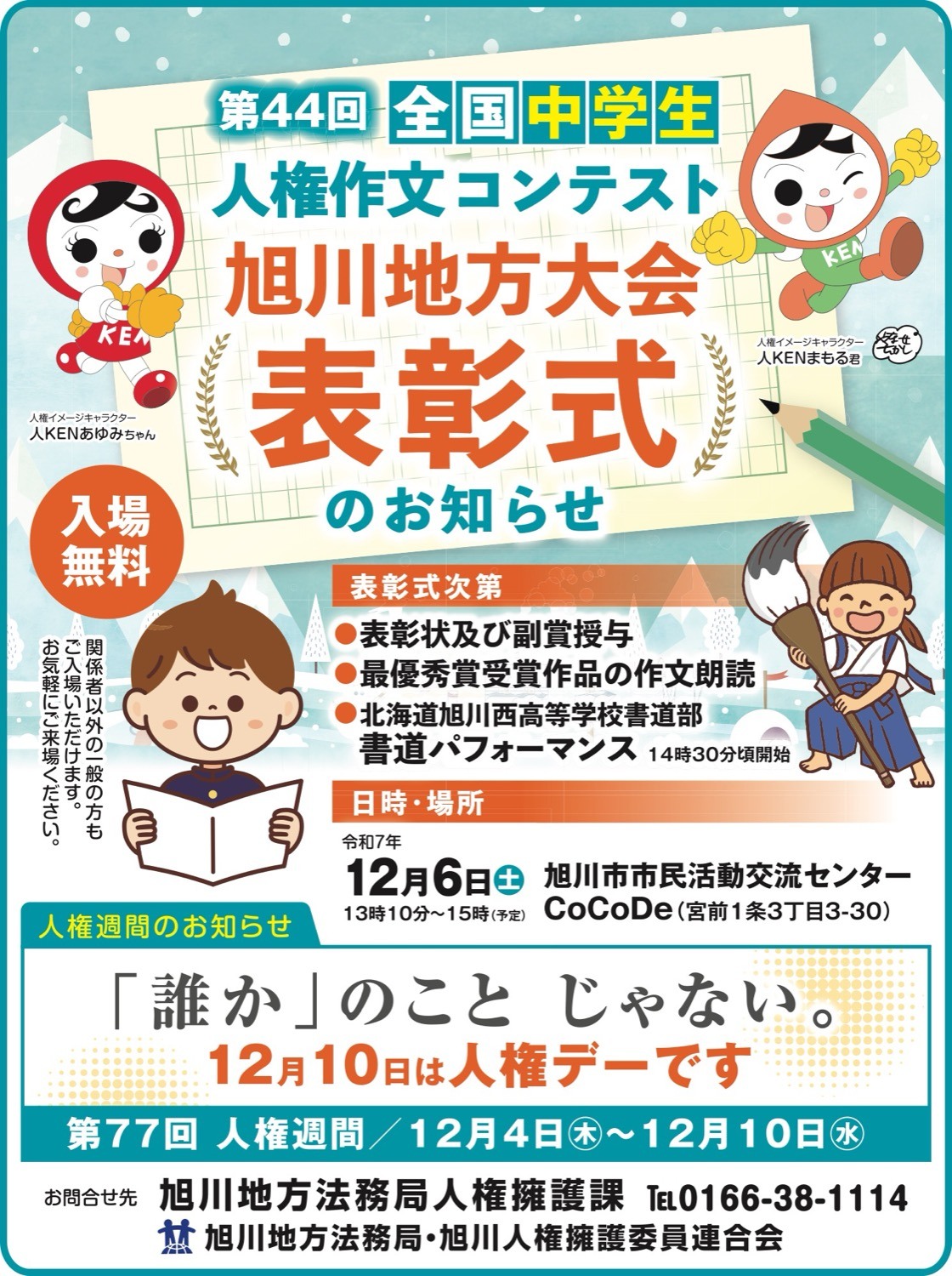 お問い合わせ先| 主催者名 | 旭川地方法務局人権擁護課 |