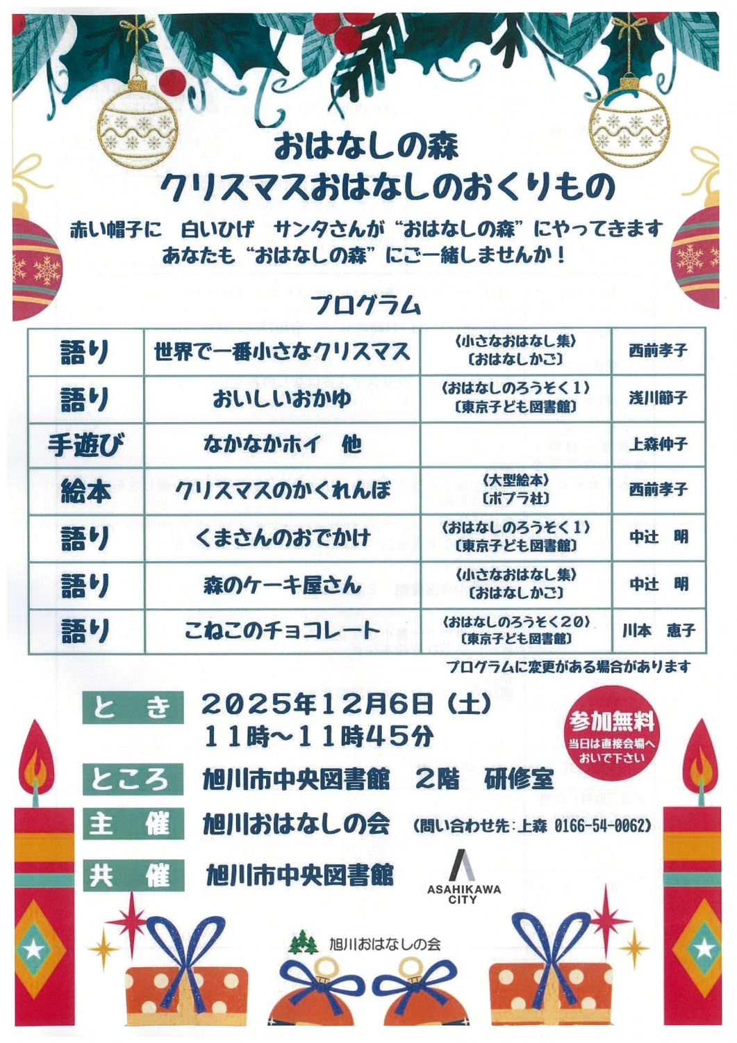 | 開催場所 | 旭川市中央図書館 2階 研修室 |