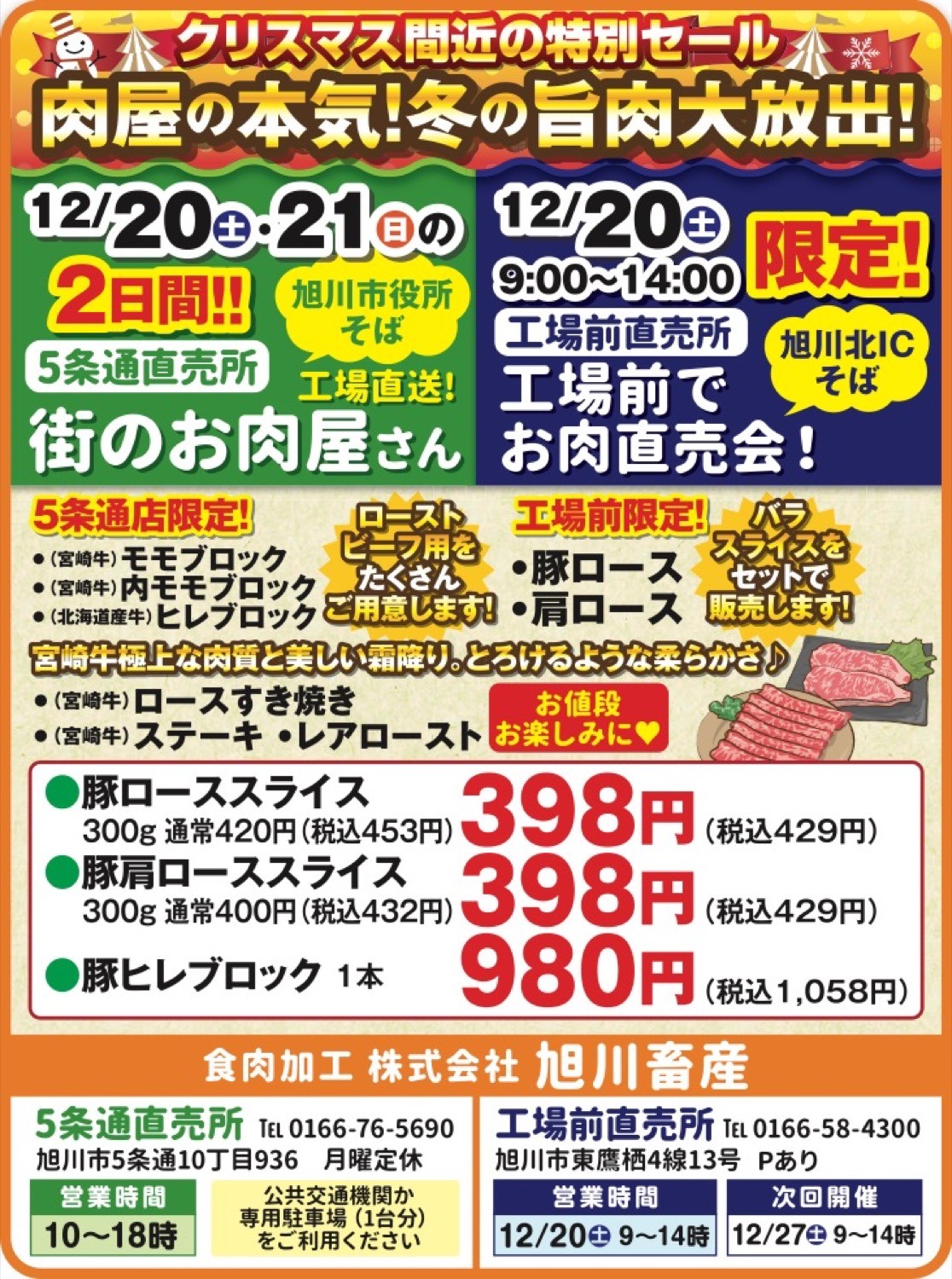 | 住所 | 5条通直売所:旭川市5条通10丁目936/工場前直売所:旭川市東鷹栖4線13号 |