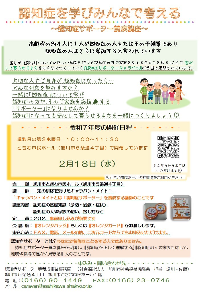 | 主催者名 | 旭川市社会福祉協議会 認知症サポーター等養成事務局 |