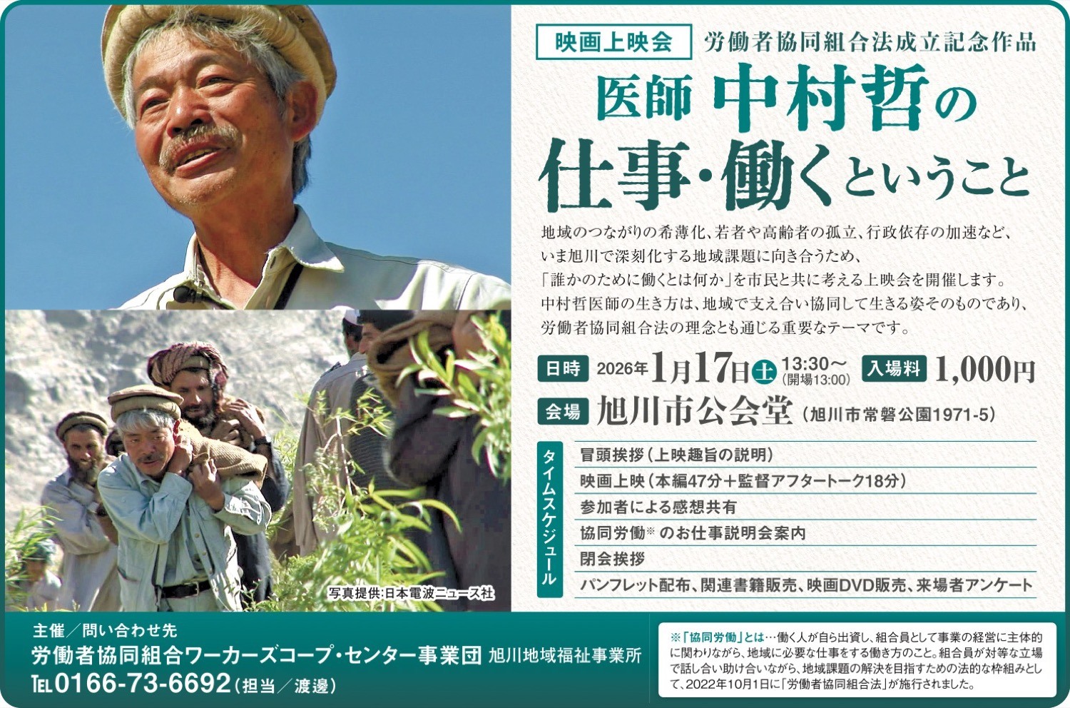 【映画上映会】医師 中村哲の仕事・働くということ