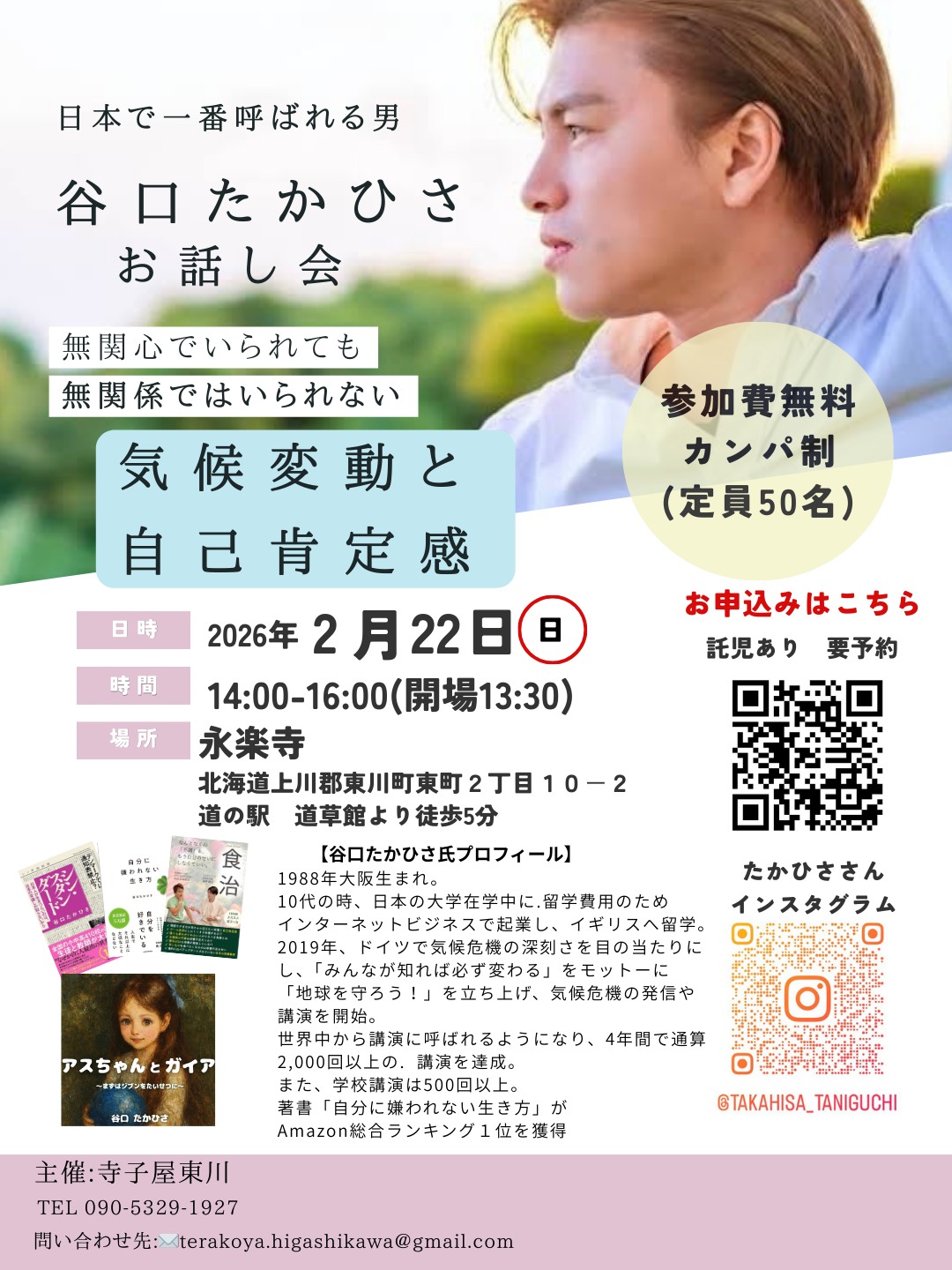 | 主催者名 | 寺子屋東川 瀧澤健太郎 |