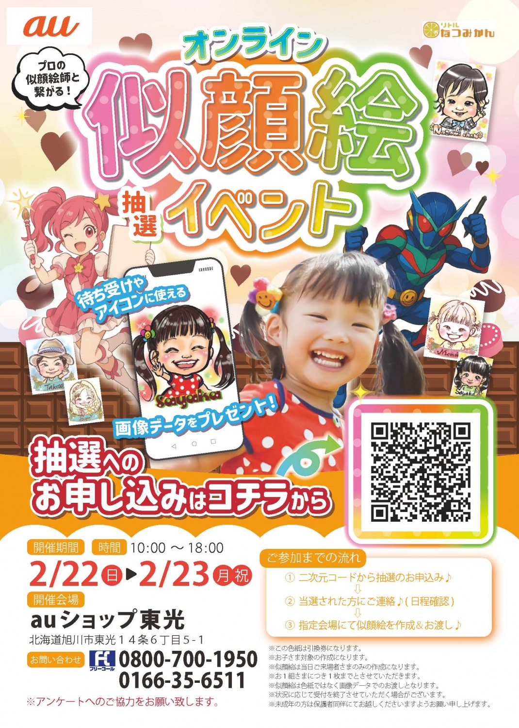 | 備考 | ※似顔絵は当日ご来場者さまのみの作成です ※一組につき1枚まで ※似顔絵は画像データでのお渡しです ※状況に応じて受付を終了させていただく場合がございます ※未成年の方は保護者同伴にてご来場ください ※当日はアンケートのご協力をお願いいたします |