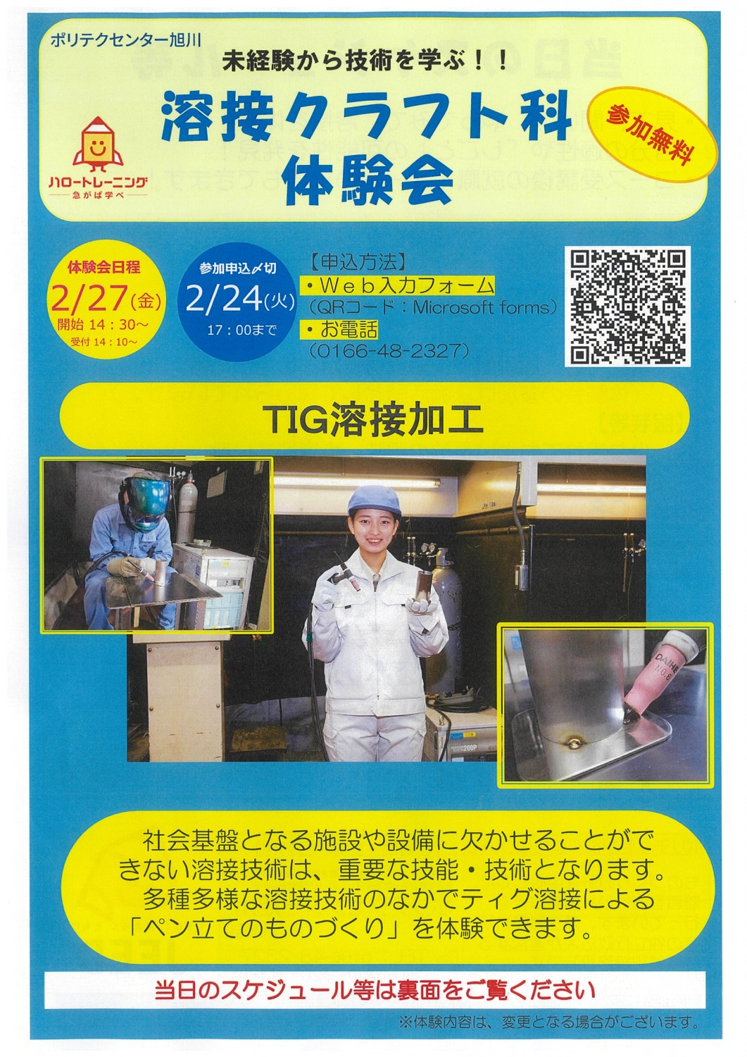(内容)・溶接クラフト科、実習風景の見学 ・TIG溶接加工の体験