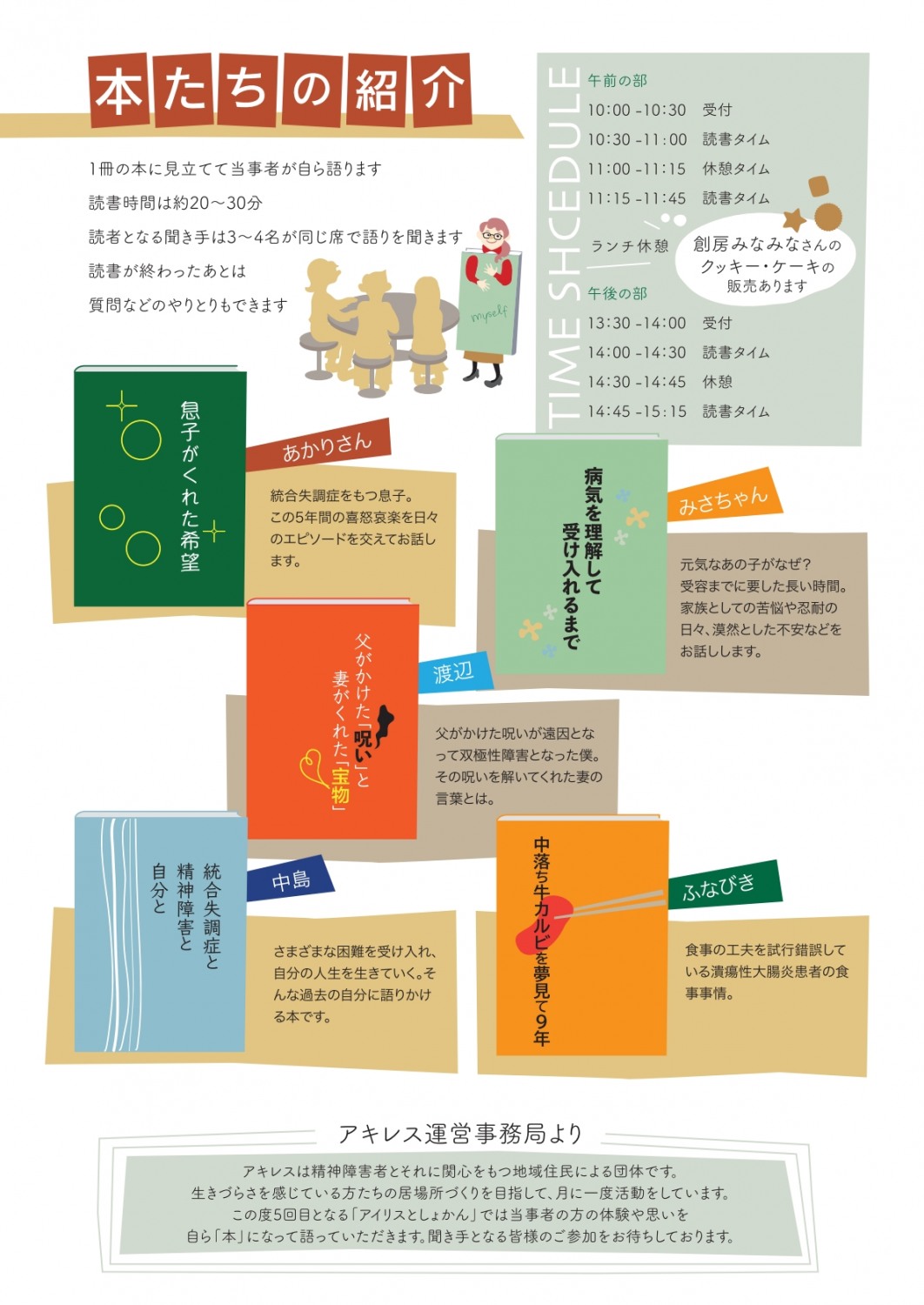 1冊の本に見立てて当事者やその家族が語らう場となっています。今回は5冊です。