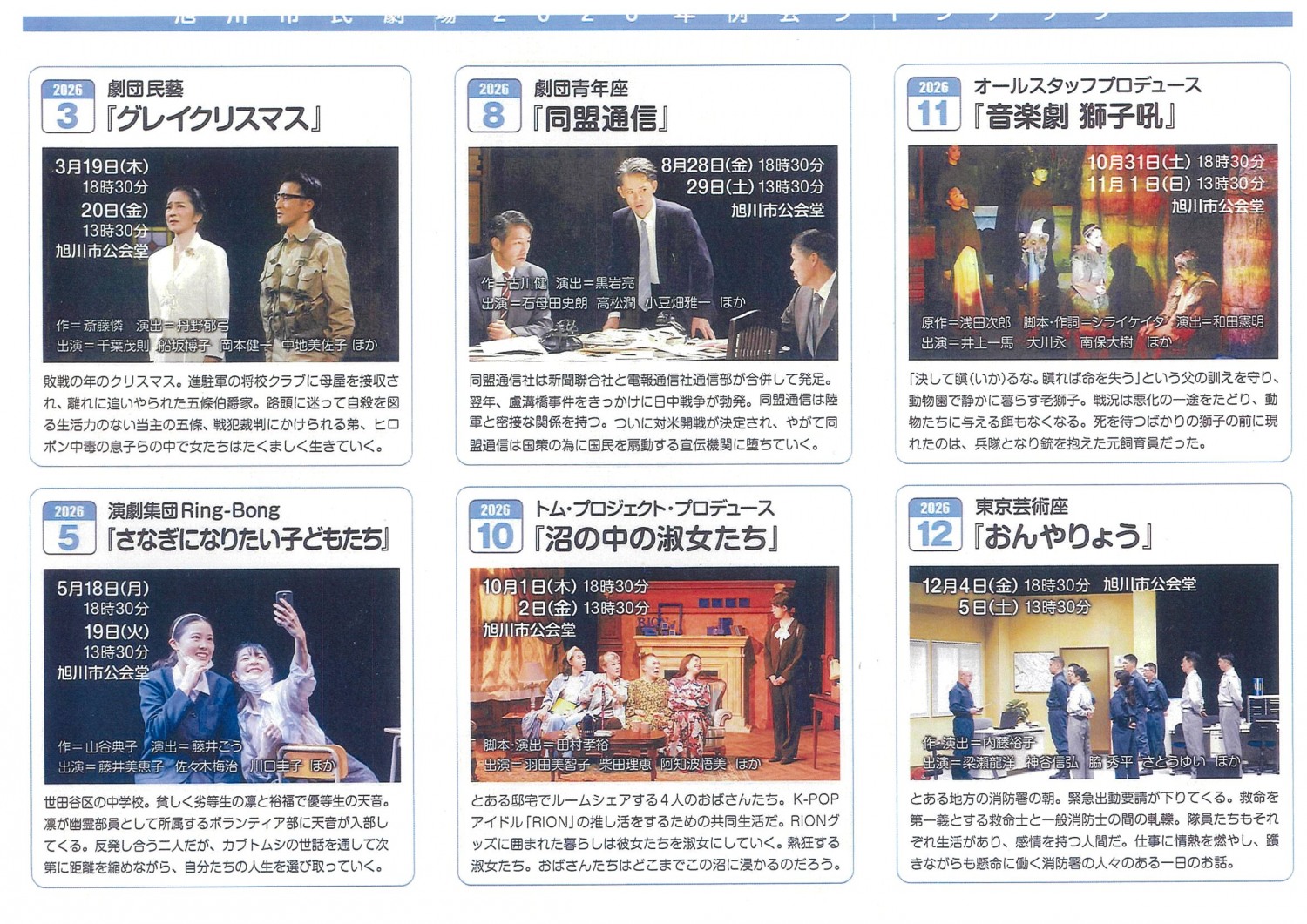 | 備考 | 会員になると年6回の演劇を鑑賞できます。詳しくは、旭川市民劇場まで。 |