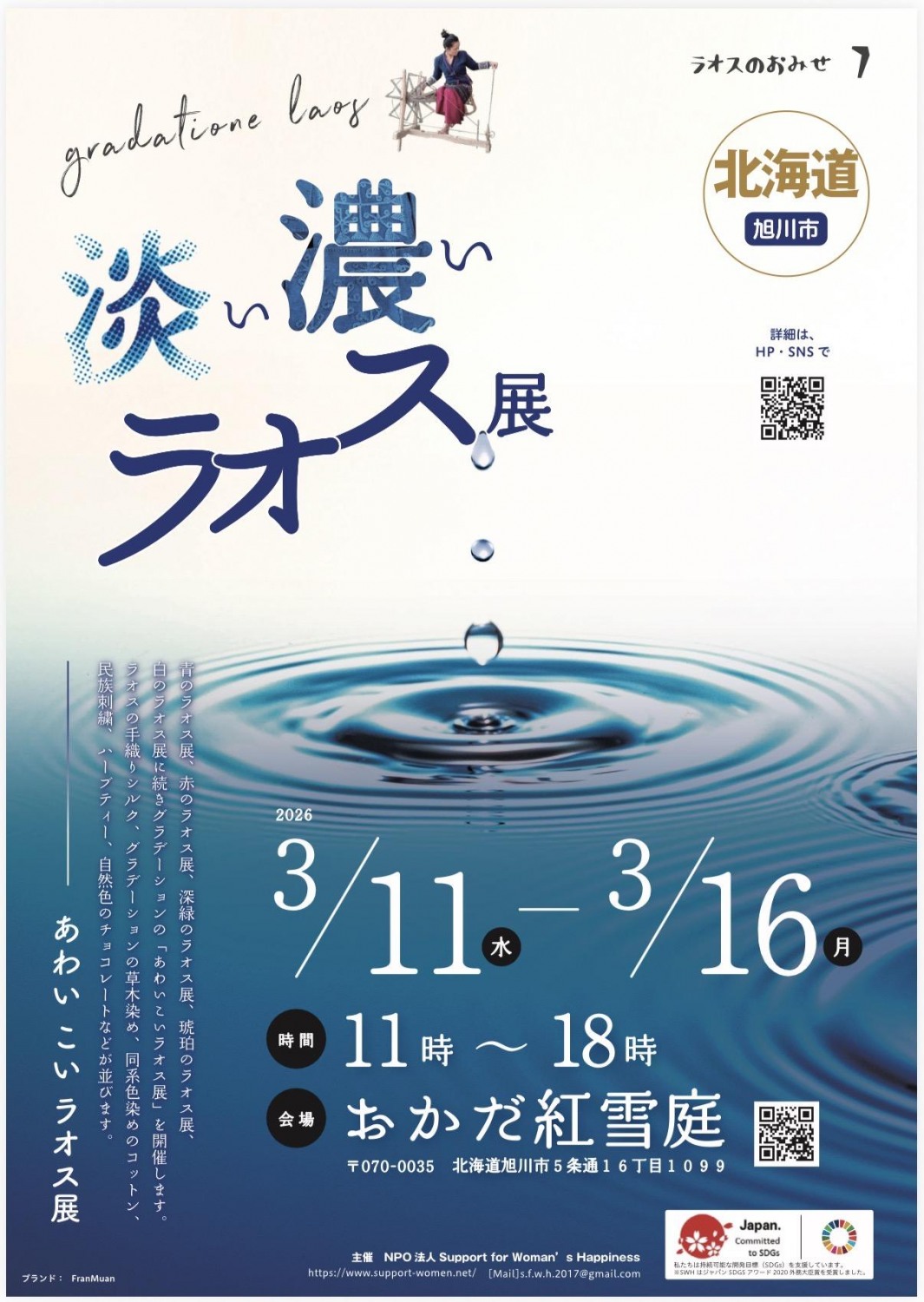青のラオス展、赤のラオス展、深緑のラオス展、琥珀のラオス展、白のラオス展に続き「あわいこいラオス展」を開催します。