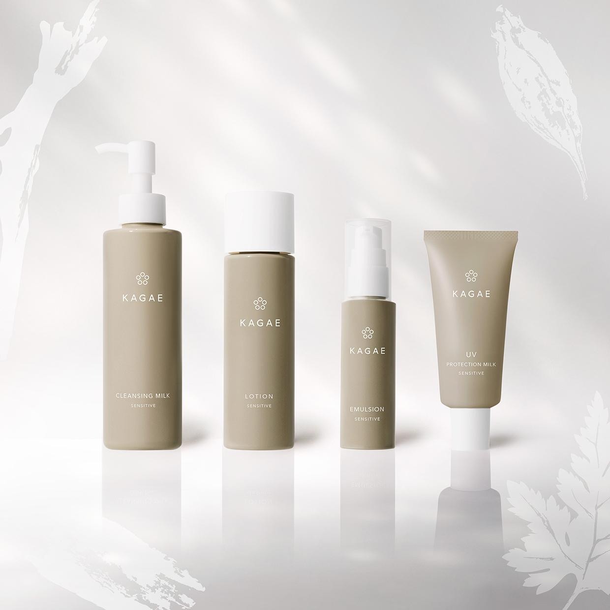 「カガエ スキンケア センシティブ」は、敏感な肌をすこやかに保つために、肌が本来もつ力「整えて、守る」ことを考えて開発したスキンケア シリーズ。50年以上のインナーケアのカウンセリングより得た和漢植物の知見を活かし、敏感肌のために丁寧に素材をセレクトしています。