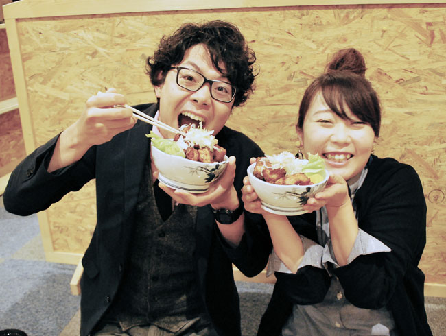 「先日からどのお店も新米に切り替わりました。やっぱり食がすすみますねー」と話すのは観光担当・市役所の番水淳哉さん。観光協会の中西芙実さんも「あと数店でコンプリートですよ」とスタンプが貯まったラリー台紙を片手ににやにや。二人ともどんぶりに夢中です。