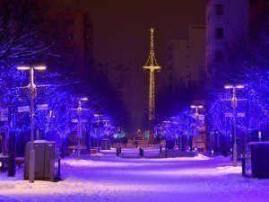 買物公園や緑橋通り、7条緑道などのほか、今年はロータリーでもイルミネーションが復活。医療従事者ら暮らしを守るために働く人々にエールを送るブルーのライトで、中心のタワーを彩ります。