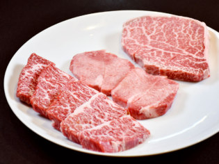 上から シャトーブリアン、極タン、上ハラミ。厚みもすごい!