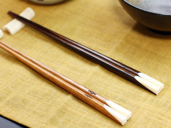 持ち手の先端に鹿のツノをあしらった唯一無二の手作り箸は、同工房のブランド「TSU-NO」の人気商品。職人が磨き上げたツノは白く美しい光沢をまとい、使うほどに味わいが増していきます。