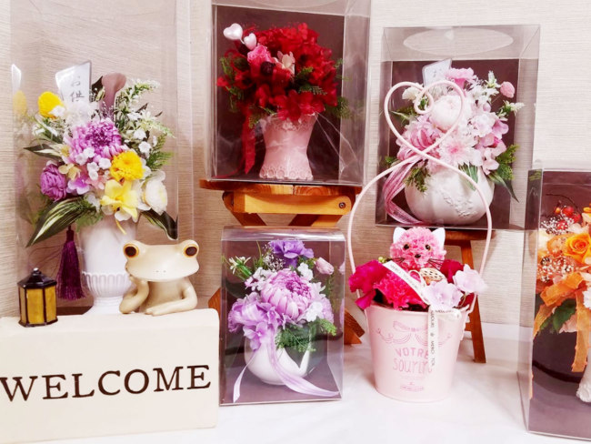 季節の切り花や観葉植物、贈り物に最適なアレンジメントやブーケまで。冠婚葬祭や各種イベントの会場装飾もお手伝いしてくれます。全国配送のほか、町内・近郊町は無料配達可。