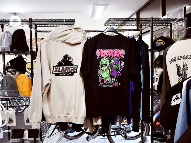国道40号線沿いにあるストリート系個性派ショップで、写真のような人気ブランドの洋服がずらりと並びます。ファットバイクやBMXなどクールな自転車は、試乗やレンタルもOK。