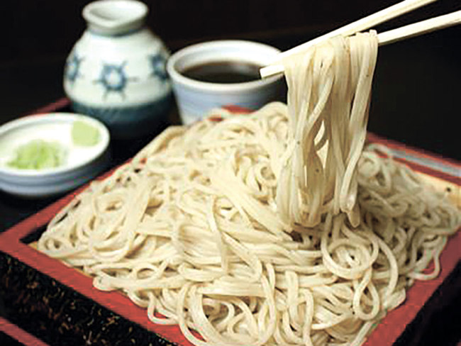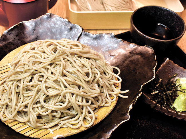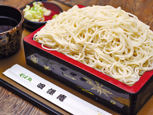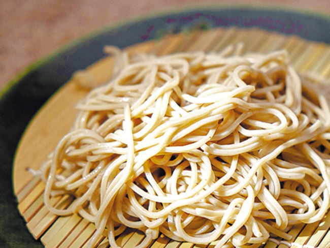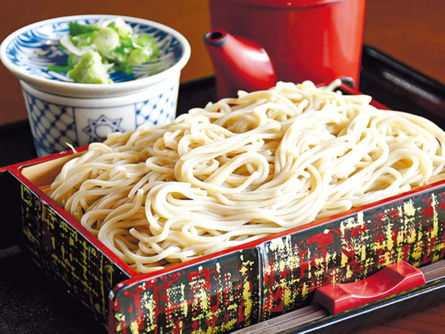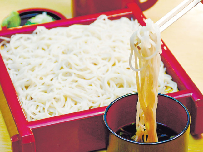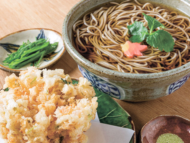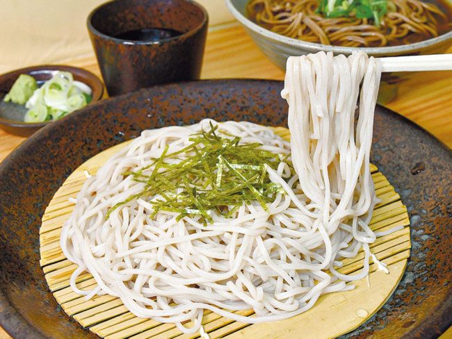 道産キタワセの挽きぐるみをブレンドした更科二八そばは、しなやかでつるみのよい食感が特徴。しっかりとした風味は、厚削りのカツオ節やサバ節をきかせた濃厚なつゆと相性抜群です。
