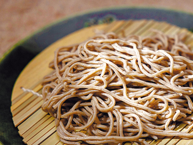美瑛産そば粉に、栄養価の高いごまを練りこんだ自慢のごまそば。打ち立てのそばは程よいコシで、ごまの香ばしく豊かな風味が口いっぱいに広がります。旭川市内は配送可。