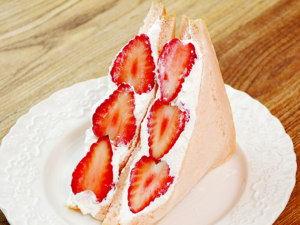 いちごサンド 594円大粒の新鮮ないちごと口あたり軽やかな生クリームを、地元のパン工房クラスト製のしっとり食パンでサンド。ボリュームたっぷりのクリームにいちごの酸味がいいあんばいで、あっさりと完食だ!