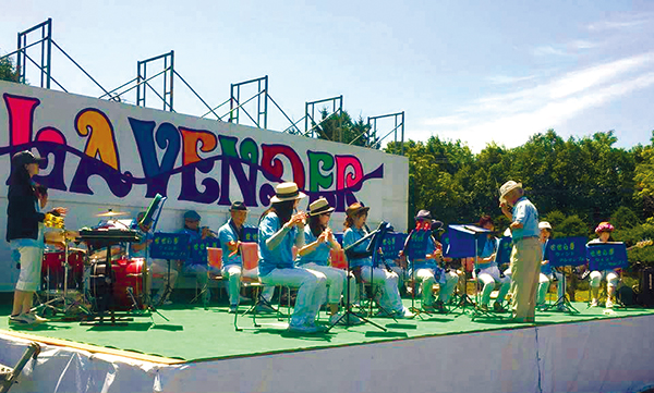 常任指揮者の荒木関守さんは中学校教諭として吹奏楽部を指導していた時代から、生徒に指揮をさせたり歌わせたりと、アットホームなコンサートを目指してきました。福祉施設などへ慰問を重ねるうち、演奏する側と聴く側がより交流できるような演奏会への思いがさらに強まり、観客をステージに招く参加型スタイルを取り入れるように。これが毎回盛り上がり、この10年来、演奏会の人気コーナーとして定着しています。