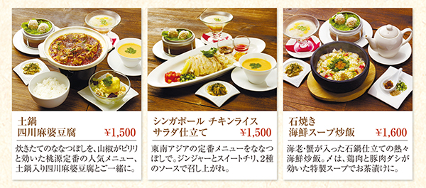 新米の持つ粘り・食感をうまく引き出すよう意識した3品をご用意しました。シンガポールライスは、タイ米ではなくななつぼしを使用。鶏肉とたっぷり野菜でヘルシーに仕上げた女性におすすめのセットです。